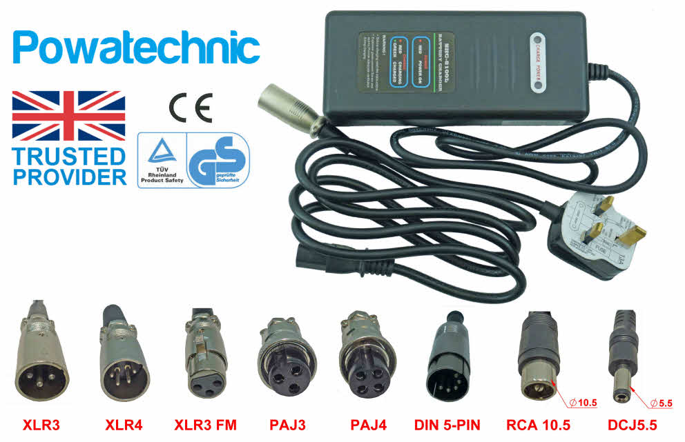 Choice of charging plug: XLR, DIN, PAJ, RCA, DCJ, Torberry/Anderson and more